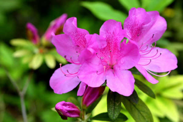 杜鹃花喜肥,但在花期时间段内建议少施肥。肥料过多营养过于充足,花朵开放的能力越强,虽然花朵是绽放美丽了,但花期时间会相应缩短。花期前施加薄肥作为养分储备,花期后及时追施复合肥补充开花消耗掉的养分。