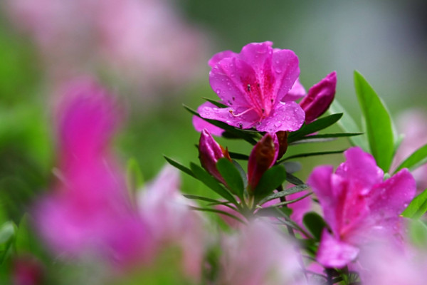 杜鹃花期如何浇水施肥,应当遵循少量多次的原则。花期分为花苞孕育、绽放期和花期结束后。绽放期要少浇水,避免花朵过早凋落,花期前后适当增湿,可以考虑不干不浇、浇则浇透的方法来使花期时间延长。
