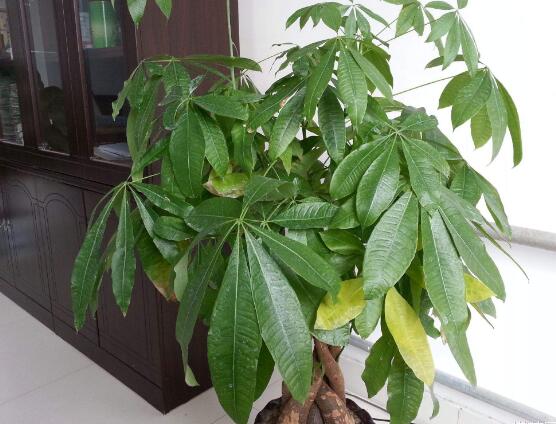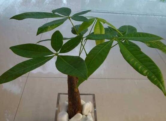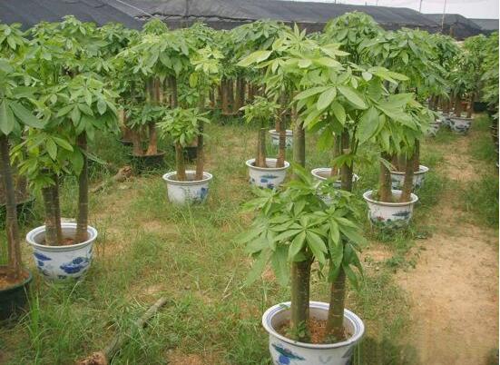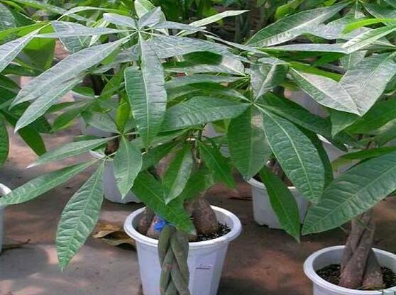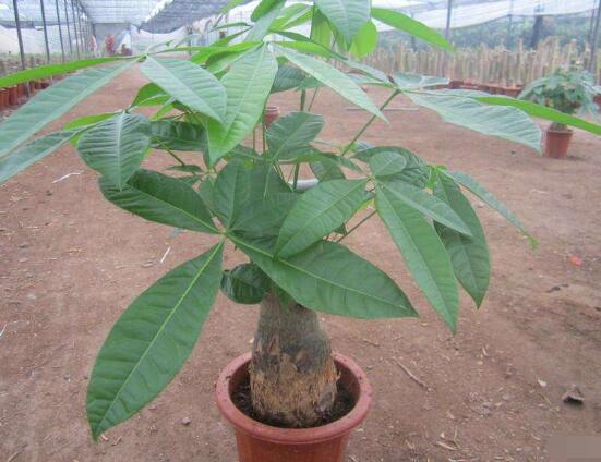 3、每年给发财树换盆时,肥土的比例可占到三分之一以上,其肥土可用落叶的腐殖土,加少量田园土,豆渣饼混合制成。这种肥力效力高,方便易得。不过需要注意是肥土要充分腐熟,以免将叶片烧黄。