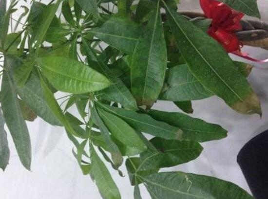 可以平时养护的时候经常的在它的叶片上喷洒一下,让发财树周围的环境保持湿润,如果是因为施肥过多而引起的话,最好是进行浇水将土壤中的养分稀释掉,但也不能浇水过多,不过要是光照过强的话,要将它搬到阴凉的地方进行养护,这样才能让植物更好的恢复原样。