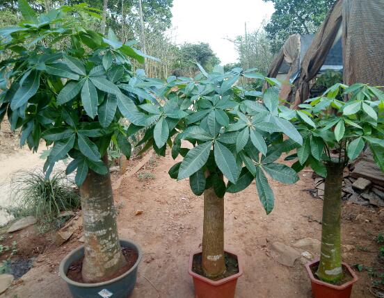 2、发财树是常绿灌木植物,其株高8-15厘米。茎干直立,叶大成互生型,小叶长达12-15厘米。宽4.5-8厘米,外侧小叶渐小,叶柄长11-15厘米。