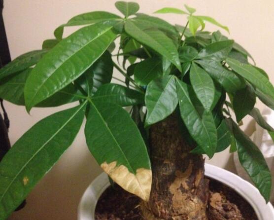 4、发财树经常会有一些黄叶,所以我们要及时将这些黄叶剪除。但是可能会有人担心对于发财树生长受到影响,其实将这些叶子剪除对于植株没有任何影响,反而会萌发出新的健康枝叶。