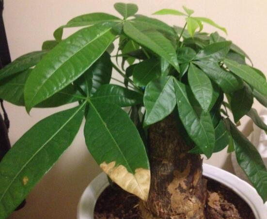 解决办法:如何进行有效施肥,是促进发财树根系充分吸收,利于枝干不断生长重要条件。所以在施肥时候,由于在生长期间一定要及时施肥,且施肥要合适,不可过多。例如通常可以施加一些腐熟的有机肥为主,同时还可以喷施磷酸二氢钾叶面肥。