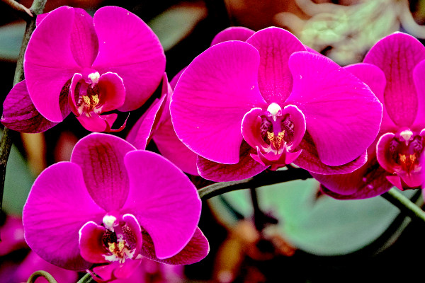 蝴蝶兰的花朵是从母株的叶腋中抽生出来的,形如蝴蝶飞舞一般,因此而得名。蝴蝶兰的花序柄是绿色,花序轴为紫绿色,花瓣呈现白色、红色、黄色、白花红心等样式,多姿多彩、艳丽美观。