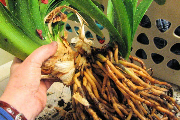 对于已经烂根的君子兰,先要将它从土壤中取出检查。从盆土中取出君子兰时要非常小心,本身已经出现烂根情况了,有的根须会比较脆弱,千万手法要轻盈,不可折断根须。将君子兰完整的取出后,下一步就是处理烂根。