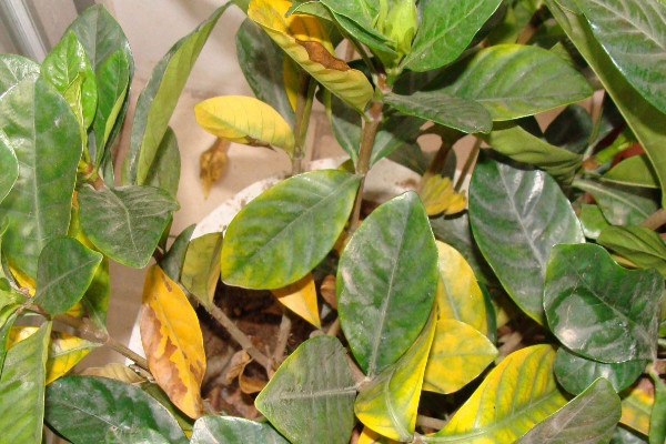 过强或过弱的光照,也会引起栀子花出现黄叶情况的。当光照过强,栀子花叶片受到强光直射暴晒后,叶片萎靡枯黄。光照过弱长期缺光,栀子花叶片则无法形成叶绿素,整体变黄脱落。